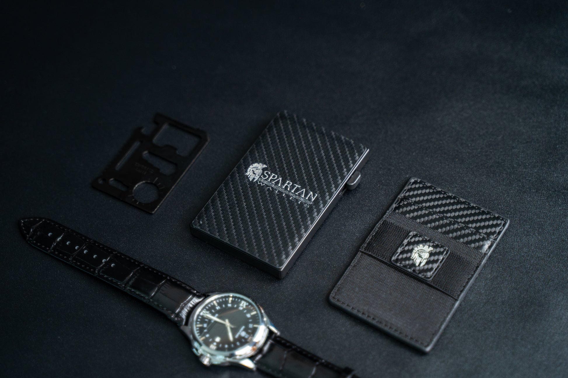This versatile cardholder can be used as a standalone wallet or attached to the Spartan Wallet for extra storage. It features a microfiber leather pocket for your multi-tool card, an elastic pouch that holds 1-3 cards, and a secure strap for cash and receipts.